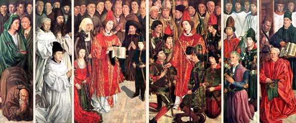 No outro "Painel do Arcebispo" ele é rodeado pelos clérigos e cavaleiros. Nesta portentosa galeria de figuras agrupadas numa composição medieval há uma meditação na peregrinação das almas, de cristãos numa viagem de descoberta a volta do santo patrono. Este é o trabalho de um mestre que mostra alguns traços do arte Italiano e flamengo mais que também revela o seus próprios tributos, uma economia de linha, pincelada brilhante, soberba caracterização, e uma maestria de composição, todas unidas e subordinadas a uma visão religiosa do trabalho.